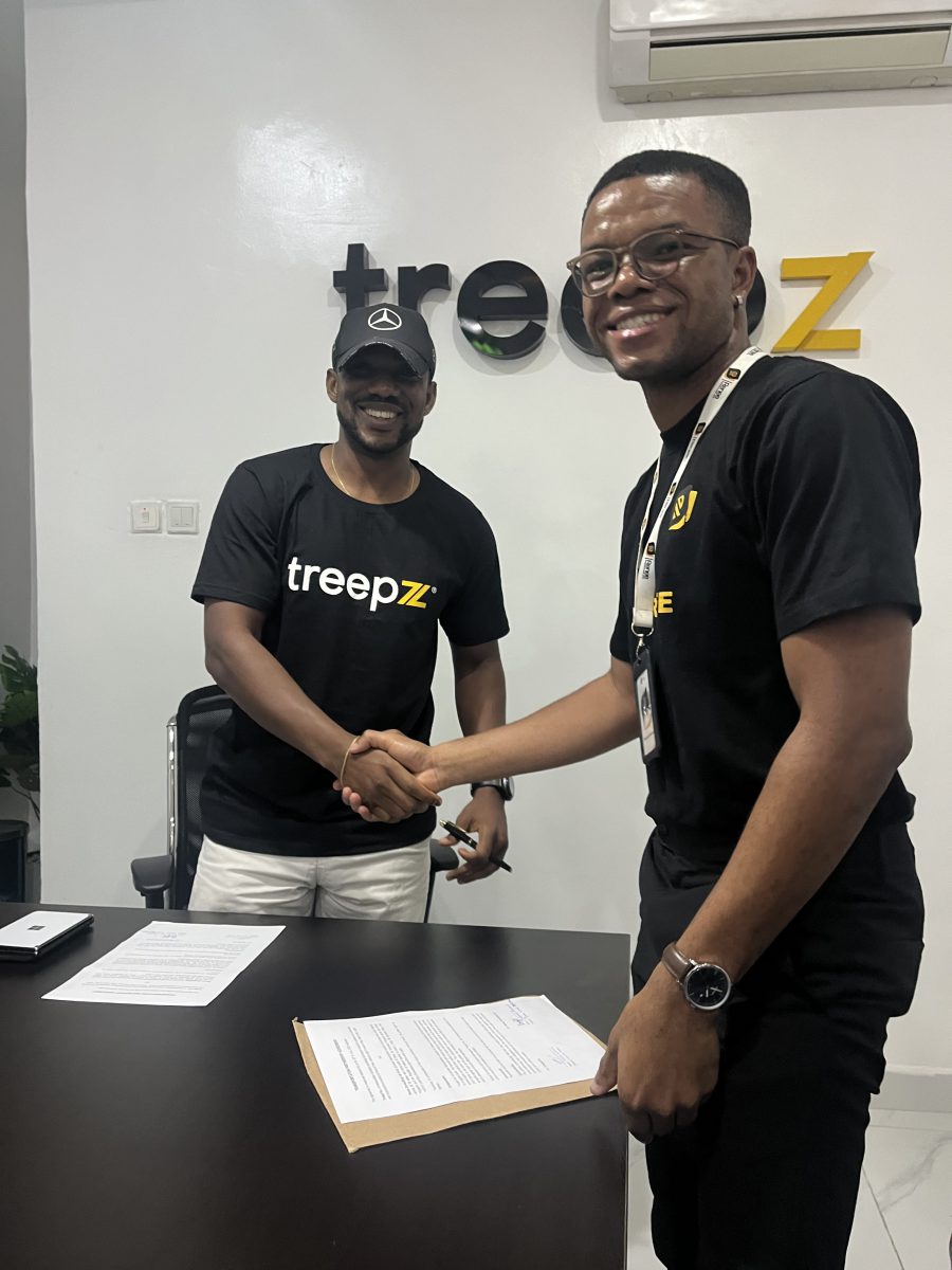 Group photo of Renee Consulting and Treepz Renee Consulting shaking hands with Treepz Signing partnership with Treepz